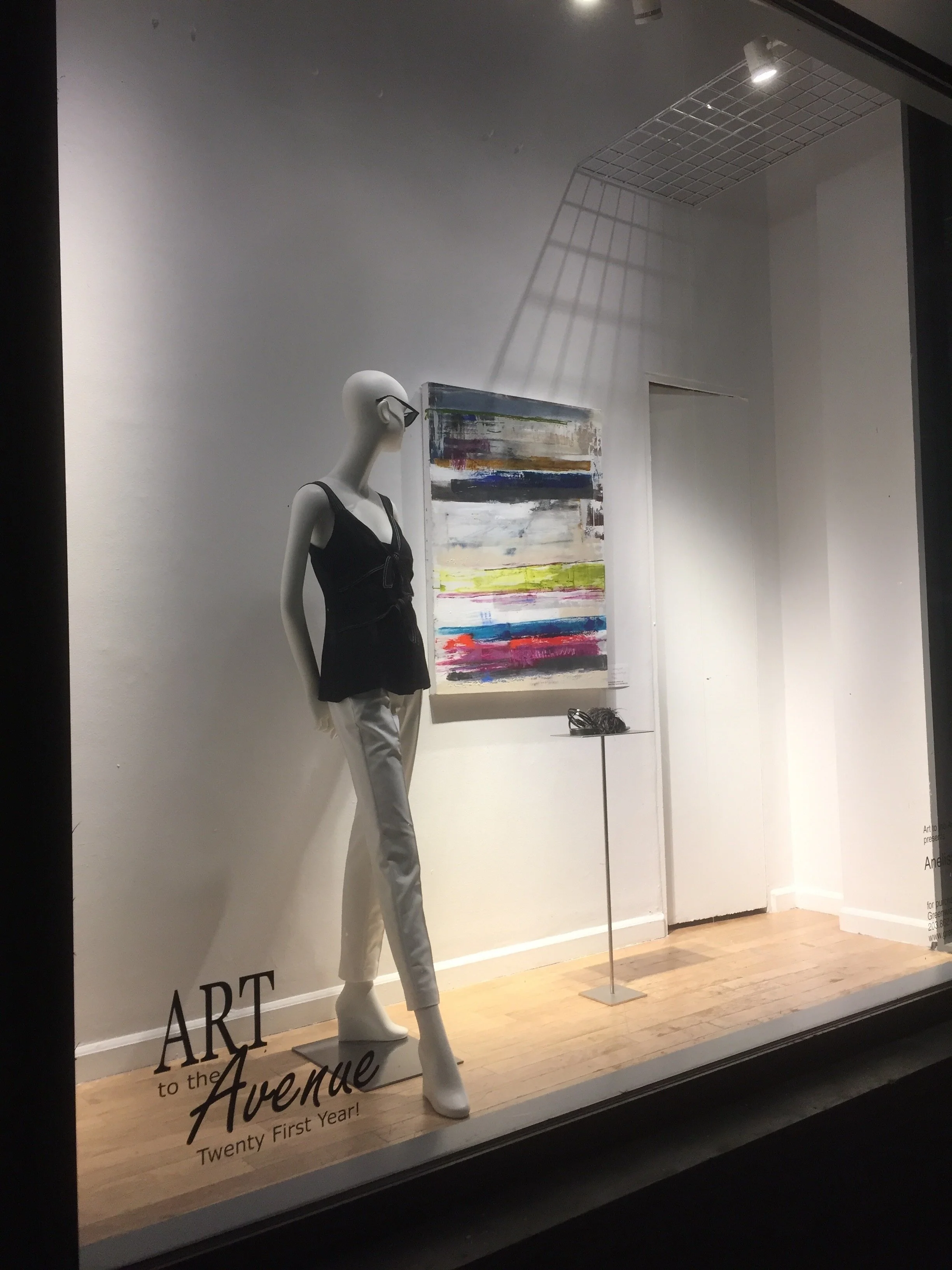 12 of Anelisa’s paintings (many pictured here) were selected to be showcased in the front street-facing, exterior window-displays at high-end clothings store, Richards, Greenwich Avenue location.